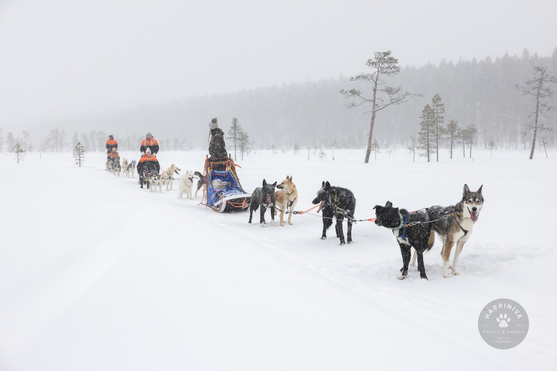 Die Safari findet südlich und nördlich von Muonio, am Rande des Pallas-Ylläs-National-Parks, im abwechslungsreichen Gelände statt. Die Tagesetappen variieren je nach dem Können der Teilnehmer,