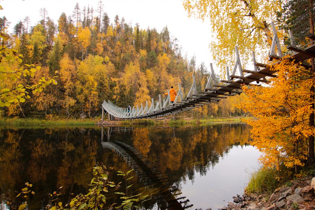 Nach dem Frühstück im Hotel unternehmen wir eine herbstliche Wanderung durch die atemberaubenden Landschaften des Oulanka Nationalparks. Geführt von einem erfahrenen Guide, erkundest du die farbenfrohen Waldpfade, bewunderst die pittoresken Flüsse und Schluchten, und entdeckst die reiche Biodiversität dieser Region. Unterwegs machen wir halt an einer malerischen Lagerfeuerstelle, wo du dich am Lagerfeuer erholen kannst, traditionelle finnische Snacks geniessen kannst und die friedliche Atmosphäre der Natur erleben kannst.